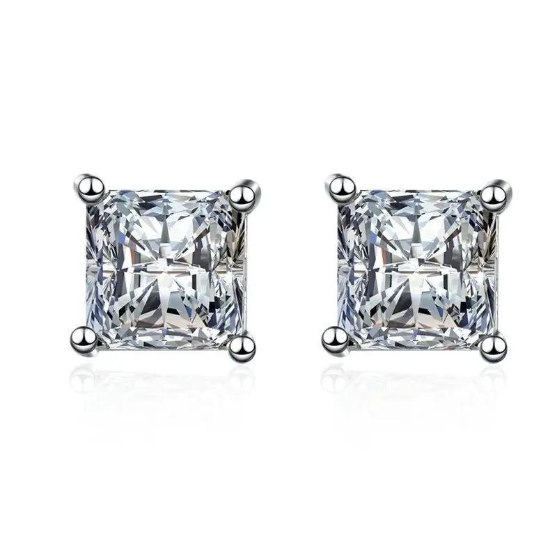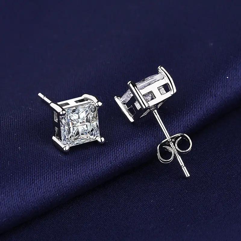 1 пара простых квадратных серег с искусственными бриллиантами, сверкающие серьги с искусственными бриллиантами