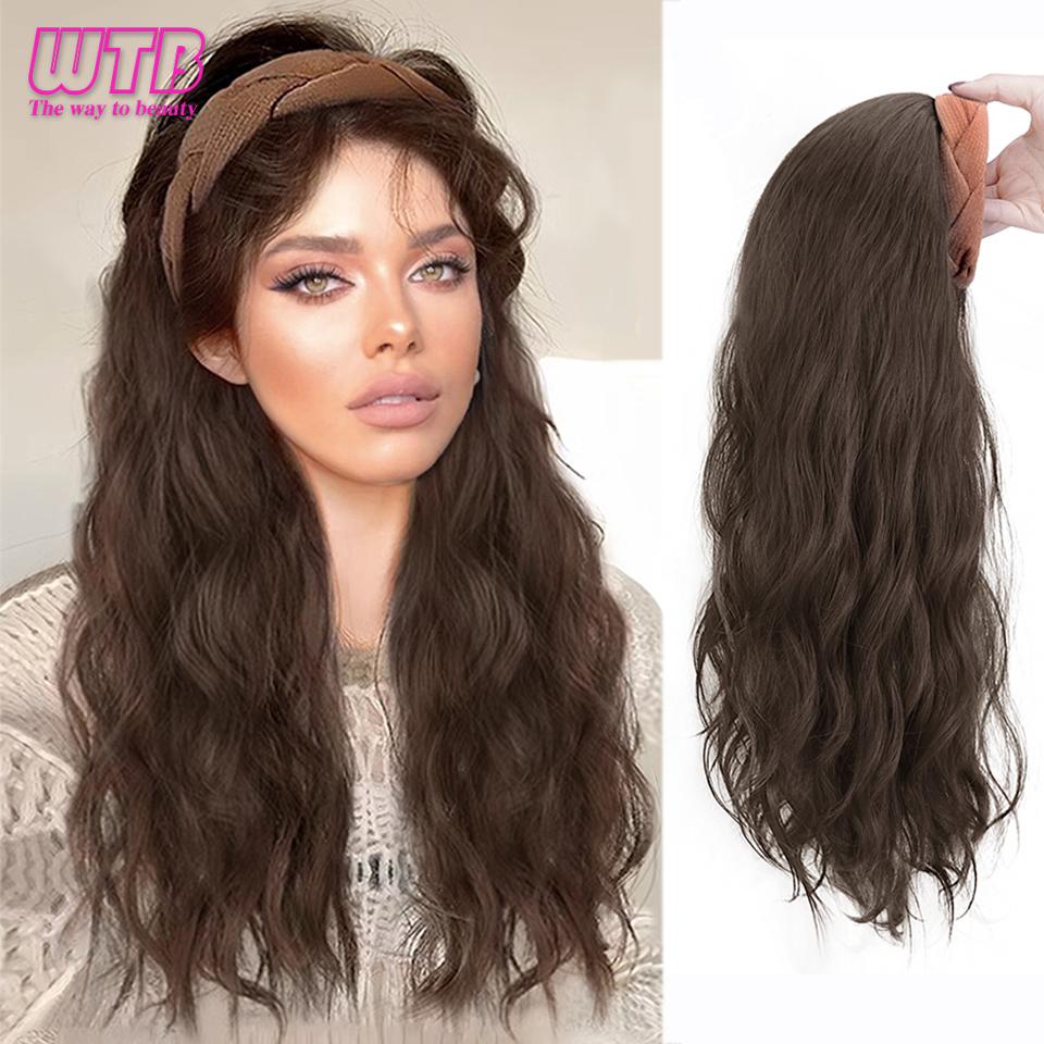 Синтетический парик с повязкой на голову, натуральный бесшовный зажим для наращивания волос, длинный волнистый женский парик, натуральный термостойкий полупарик для женщин