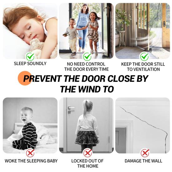 Когда наш дверной стопор установлен, вам больше не нужно постоянно открывать и закрывать дверь.. Это обеспечивает удобство и спокойствие.