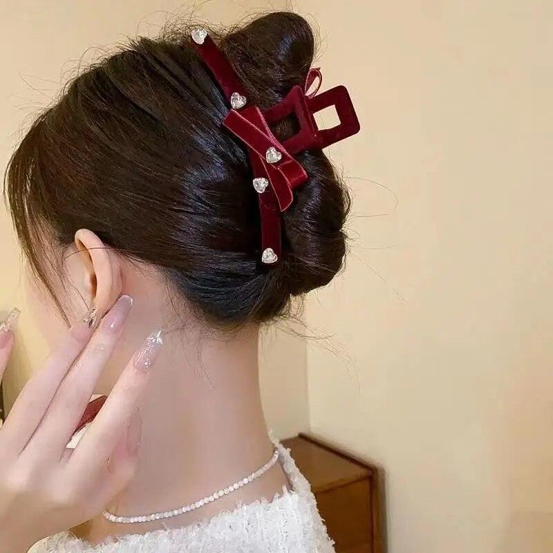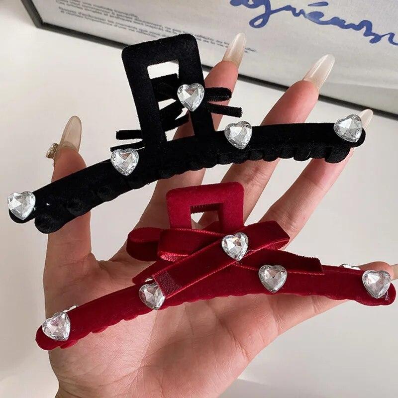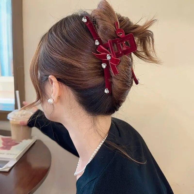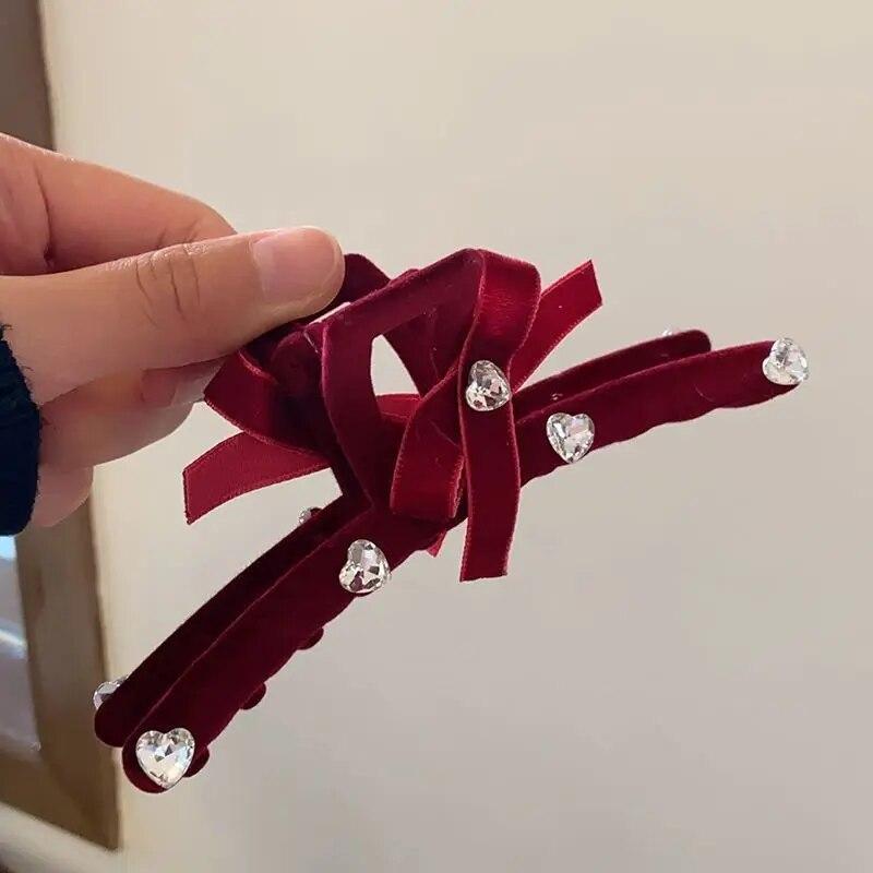 Ретро бархатные заколки для волос с бантом, модные заколки для волос со стразами, когти в виде краба, заколки для волос, винтажные головные уборы, женские аксессуары для волос, подарок