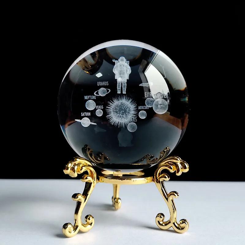 3D хрустальный шар с подставкой, планета, лазерная гравировка, глобус Солнечной системы, астрономический подарок, подарок на день рождения, стеклянная сфера, украшение для дома