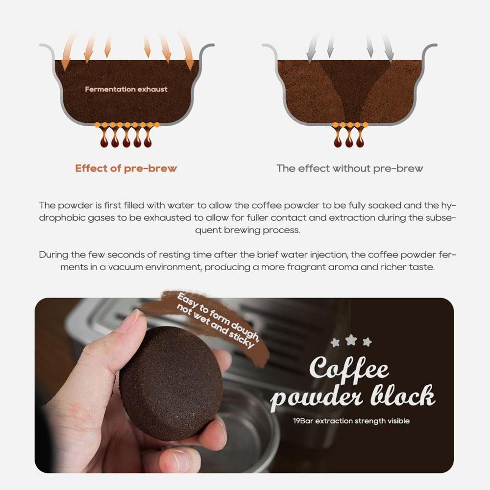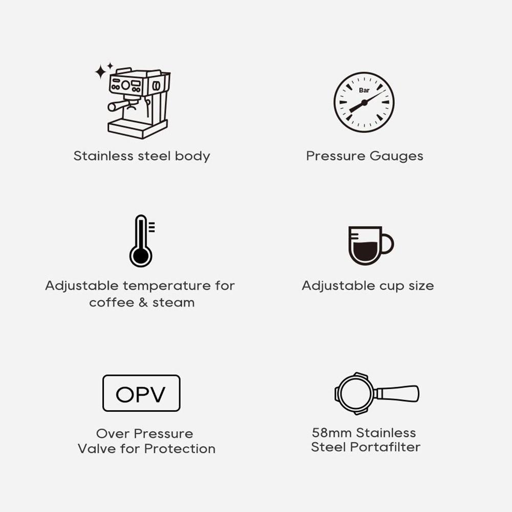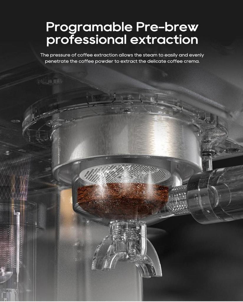 Эта полуавтоматическая кофемашина для эспрессо может регулировать количество кофе, температуру экстракции, температуру пара и время предварительного заваривания.. Богатые функции программирования помогут вам отрегулировать кислотность и горечь кофе, который подходит именно вам.. Эта программируемая кофемашина поможет вам извлечь даже кофейные зерна разного вкуса.