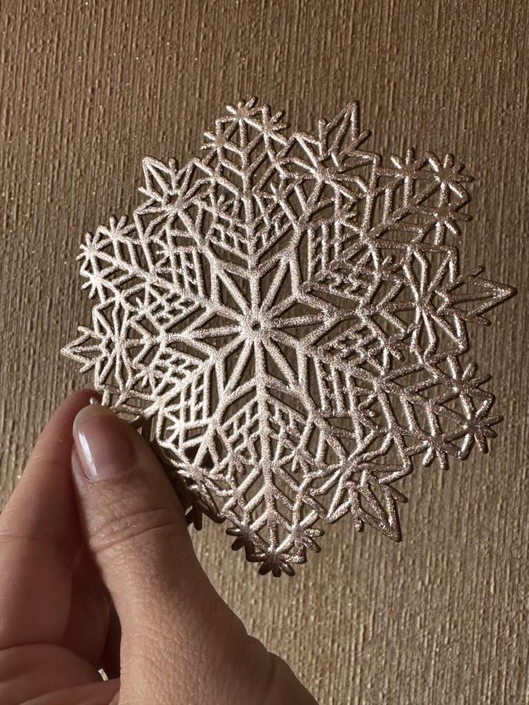 2 снежинки пришли в одной посылке, но в разных пакетиках. Одна из них ровная, другая была сложена пополам (после того, как на нее поставила чашку с горячим чаем, выпрямилась). Целые, без запаха. Смотрятся очень изыскано и празднично. ❤️ Благодарю продавца и всех причастных!❤️ Рекомендую!