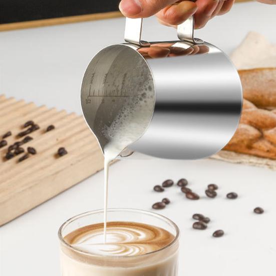 Чашка для вспенивания молока имеет эргономичную ручку для удобного захвата, которая позволит вам создавать красивые узоры кофейного искусства.