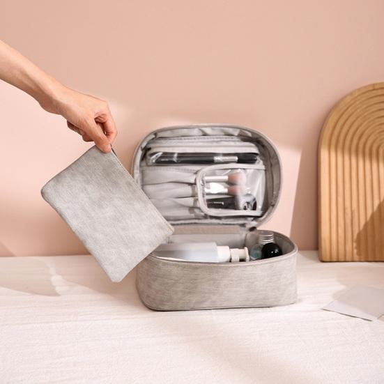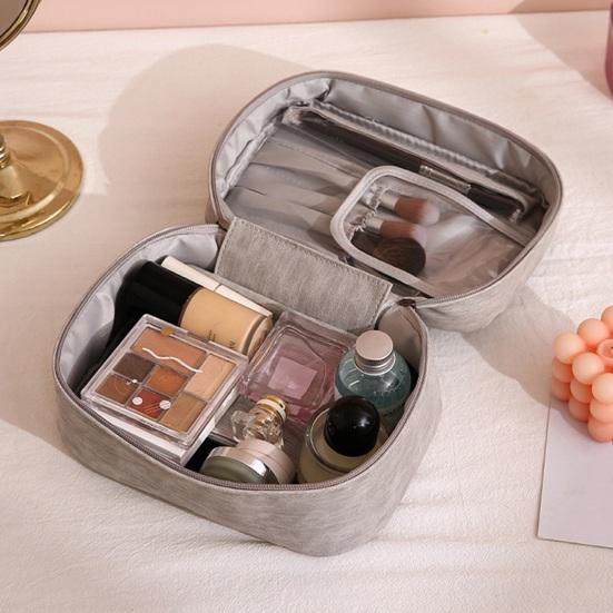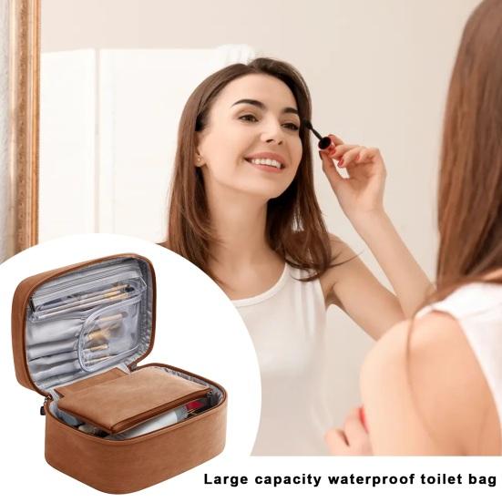 Универсальный и просторный: Легко вмещает дорожные туалетные принадлежности, косметику и другие предметы, а также имеет специальное отделение для кистей для макияжа.