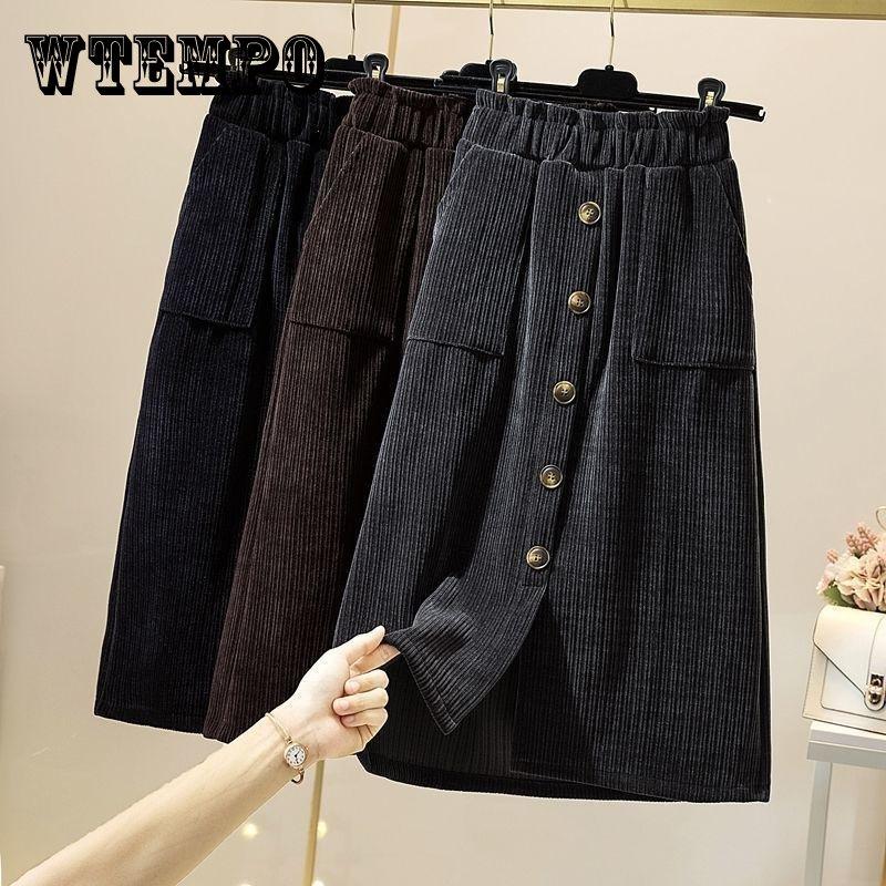 Осень-зима, толстая юбка средней длины с разрезом, женская юбка трапециевидной формы из синели с высокой талией, длинная юбка больших размеров с карманами