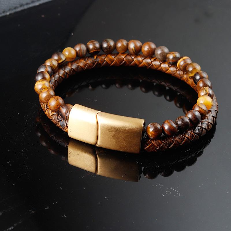 Винтажный многослойный плетеный желтый тигровый камень, кожаный браслет из нержавеющей стали с бисером для мужчин и женщин, модные ювелирные аксессуары в стиле хип-хоп, панк