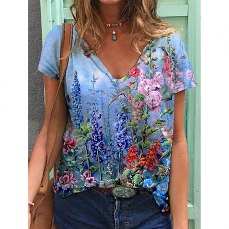 Женская летняя футболка с разноцветными цветами и принтом, футболки с короткими рукавами, повседневные топы с принтом — купить товар онлайн с бесплатной доставкой по всему миру!