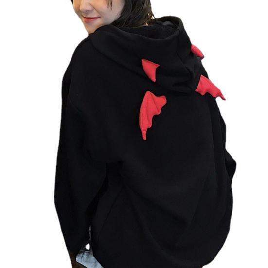 Толстовка с капюшоном в готическом стиле для девочек, свободная посадка с длинными рукавами и рогами дьявола, женская толстовка с крыльями демона, уличная одежда