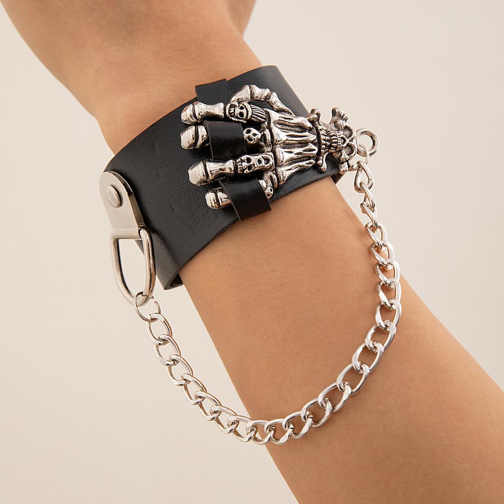 Новый мужской браслет с когтями скелета, мужской модный хип-хоп, высококачественный кожаный металлический браслет в стиле ретро, браслет