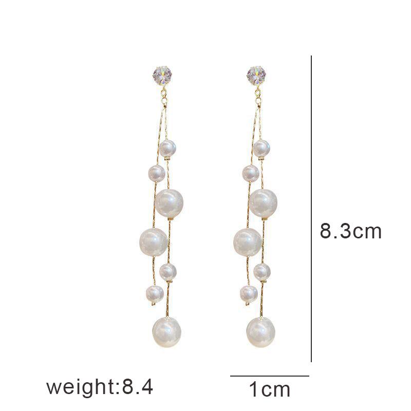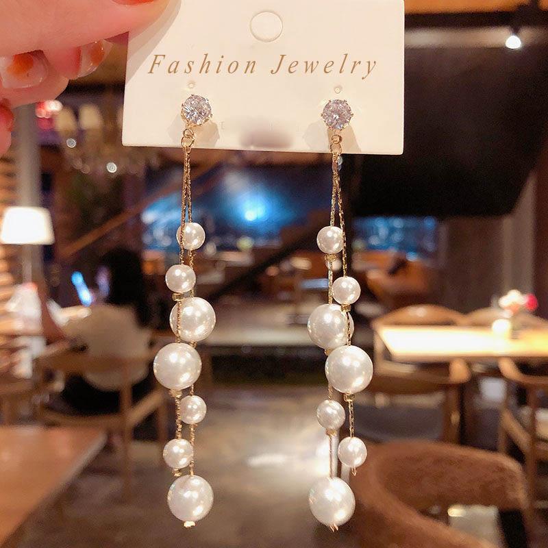 Длинные серьги с кисточками из искусственного жемчуга, круглые бусины со стразами, свисающие модные ювелирные изделия, подарок, эффектные темпераментные серьги, падающие серьги