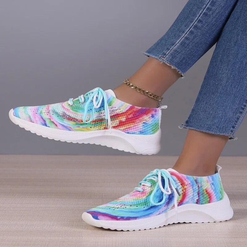 Женские кроссовки 2024, весенние новые смешанные цвета, эластичная ткань, женская повседневная вулканизированная обувь на шнуровке, 43 спортивная обувь большого размера — купить товар онлайн с бесплатной доставкой по всему миру!