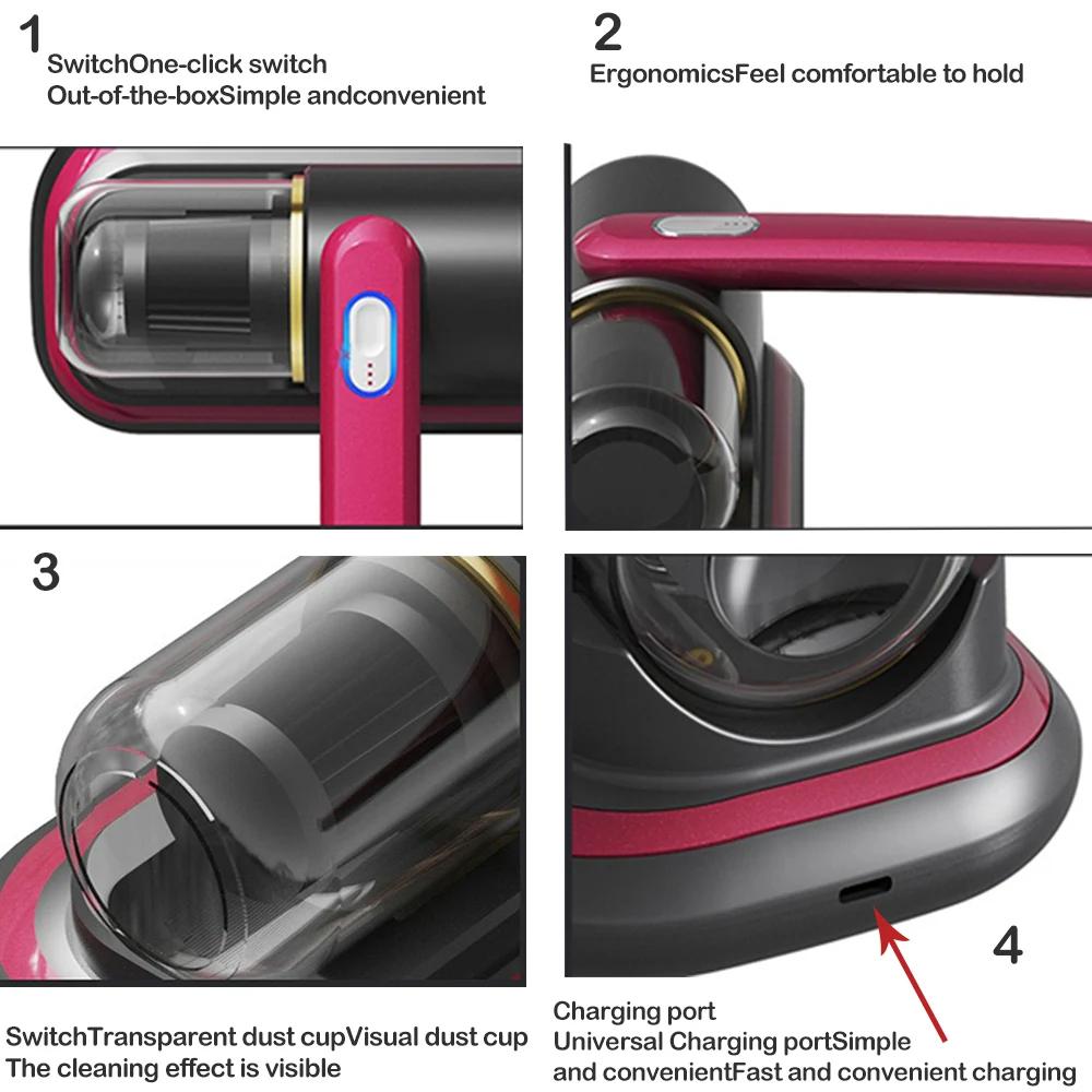 Беспроводной пылесос для удаления клещей, ручной УФ-C матрас, кровать для удаления пыли, глубокая очистка дивана, съемный фильтр, мощность 8000 Па