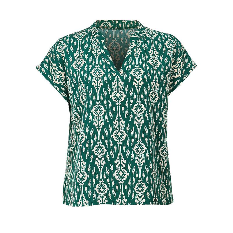 YYFS Женские модные повседневные летние блузки и рубашки с короткими рукавами и воротником-стойкой