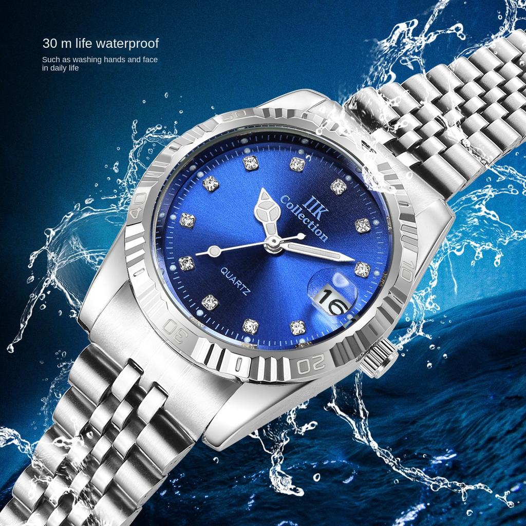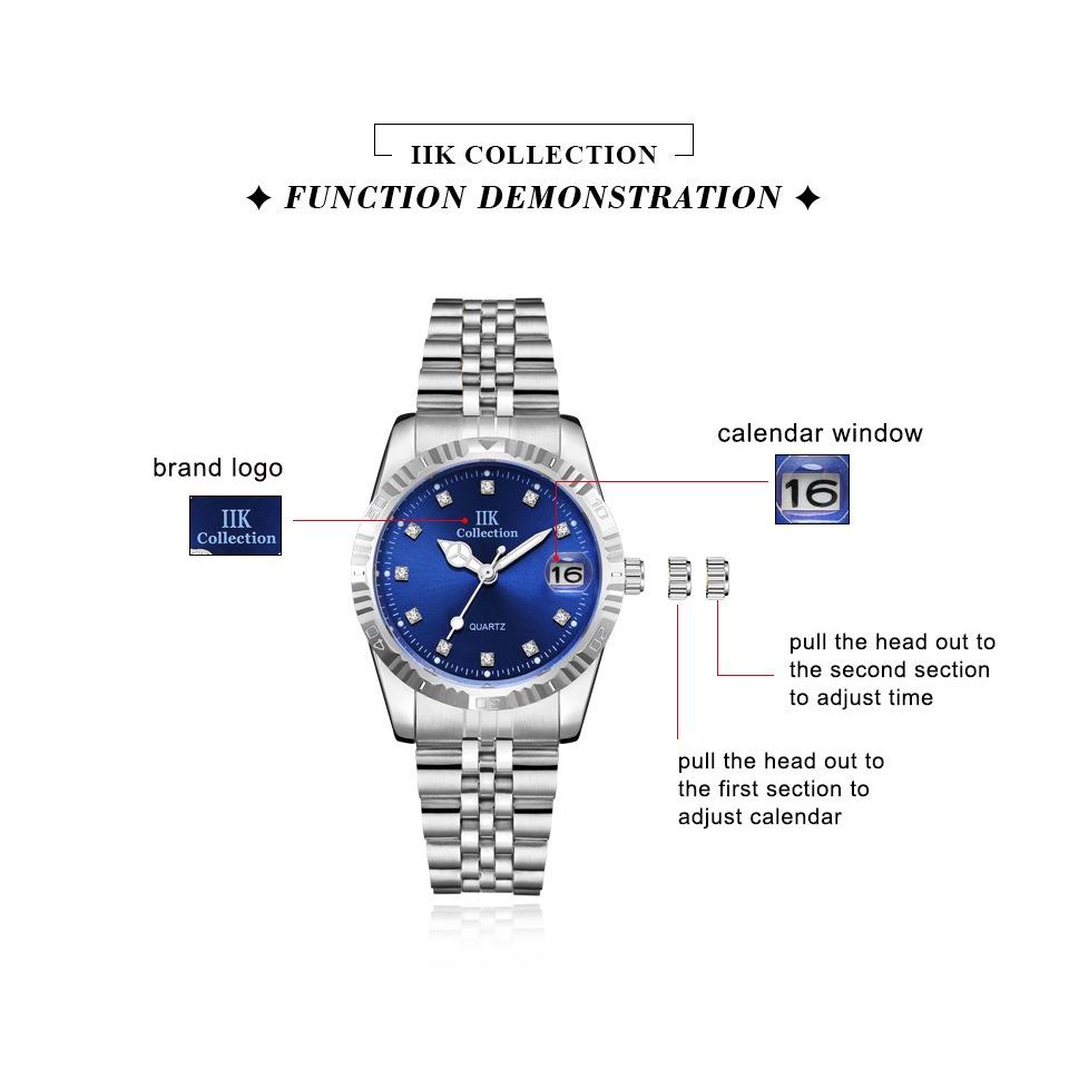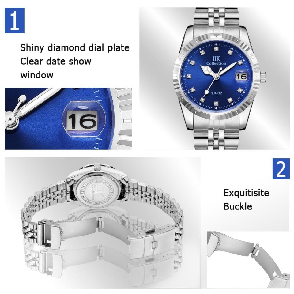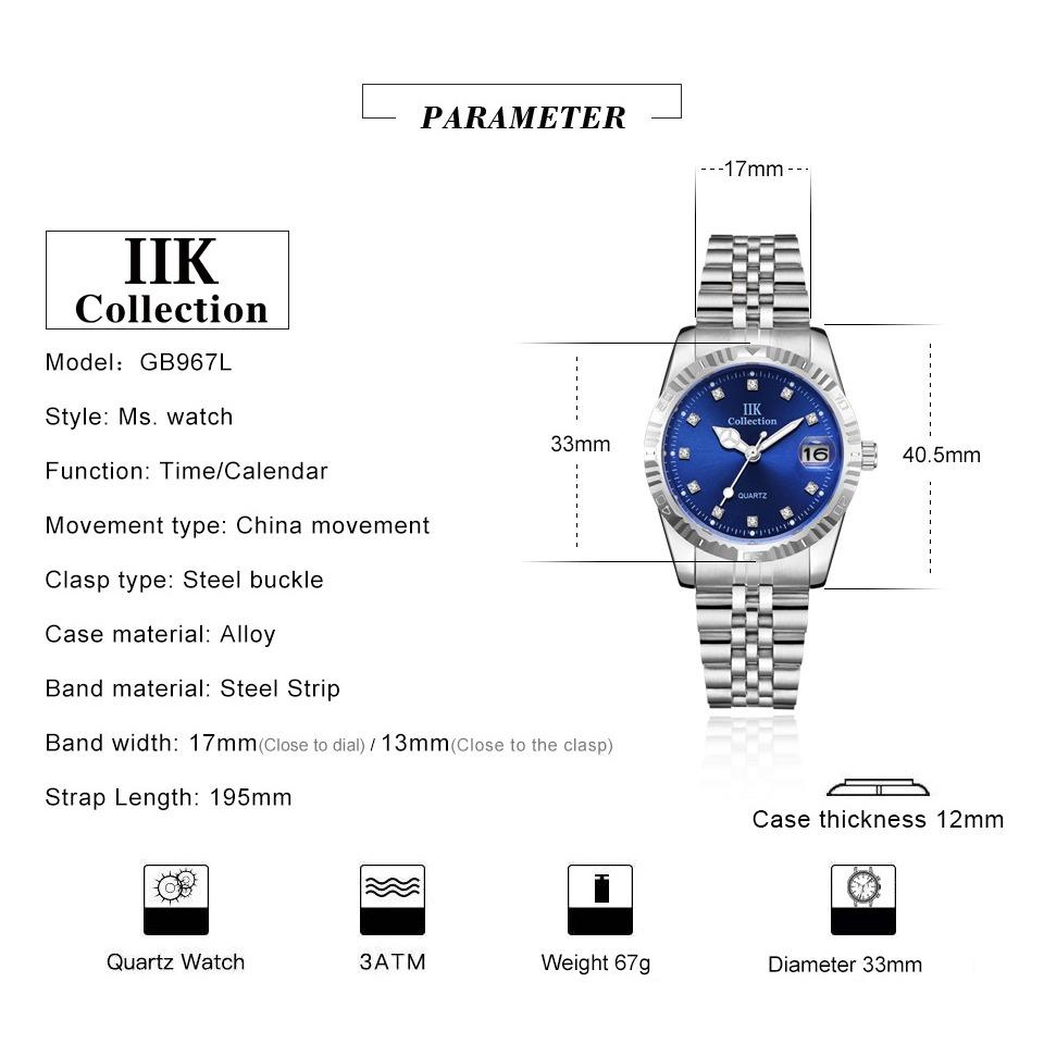 IIK Новые модные деловые женские часы для пар, простые водонепроницаемые кварцевые часы из нержавеющей стали GB967L