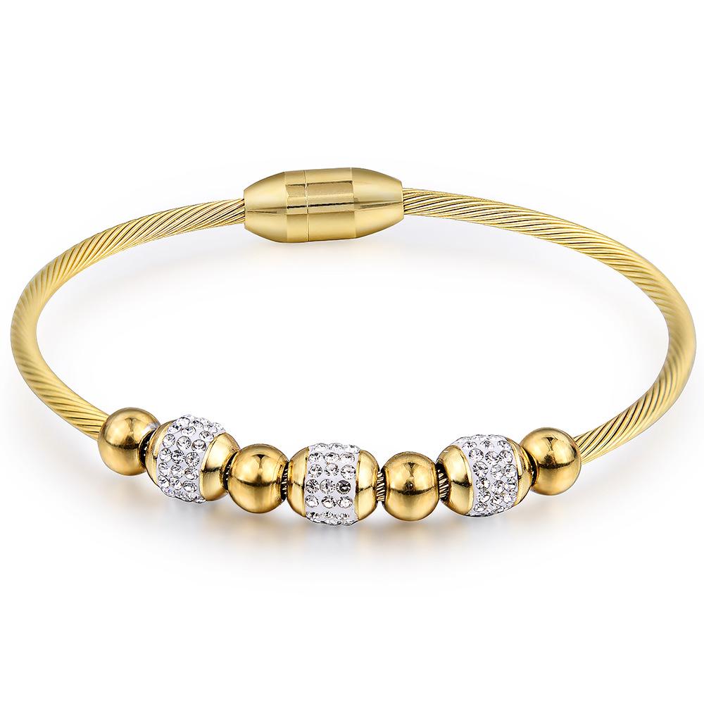 Магнитная пряжка, модный круглый браслет из титановой стали с инкрустацией цирконом, многофункциональные аксессуары, симметричные круглые бусины, золотой браслет для женщин