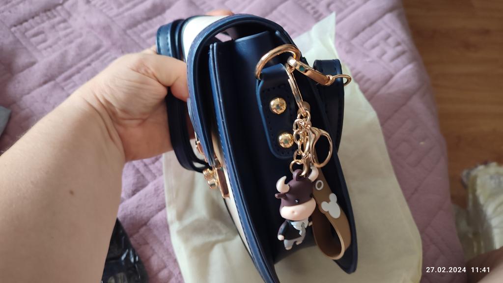 Сумочка симпатичная, но очень маленькая. Одно деление, без кармашков. Вместится максимум телефон и маленький бумажник. Купила за 1092р.На лето, на прогулки норм. В подарочек милый брелочек. Спасибо!