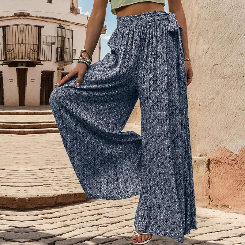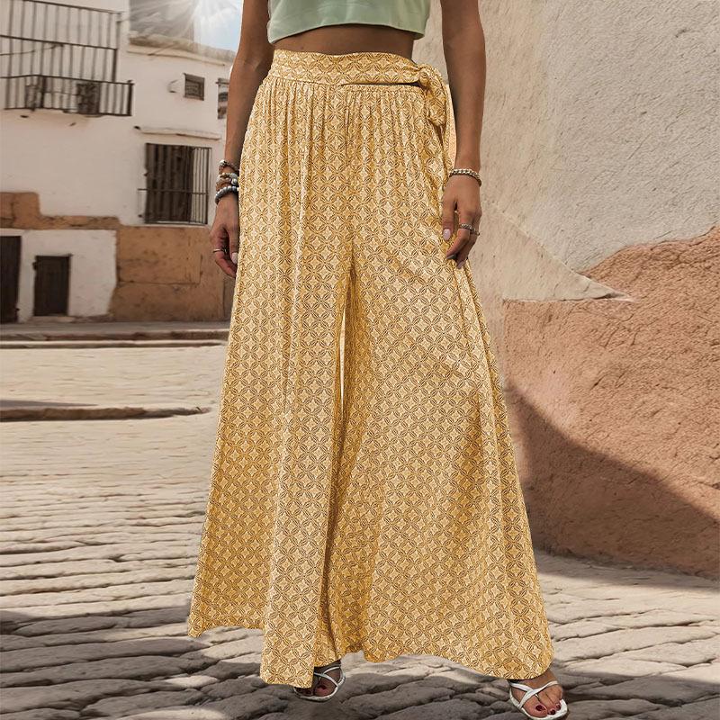 Весенние и летние широкие брюки, женские повседневные брюки со свободными завязками и высокой талией