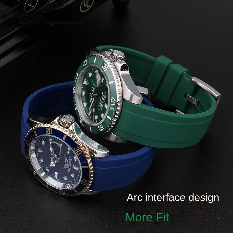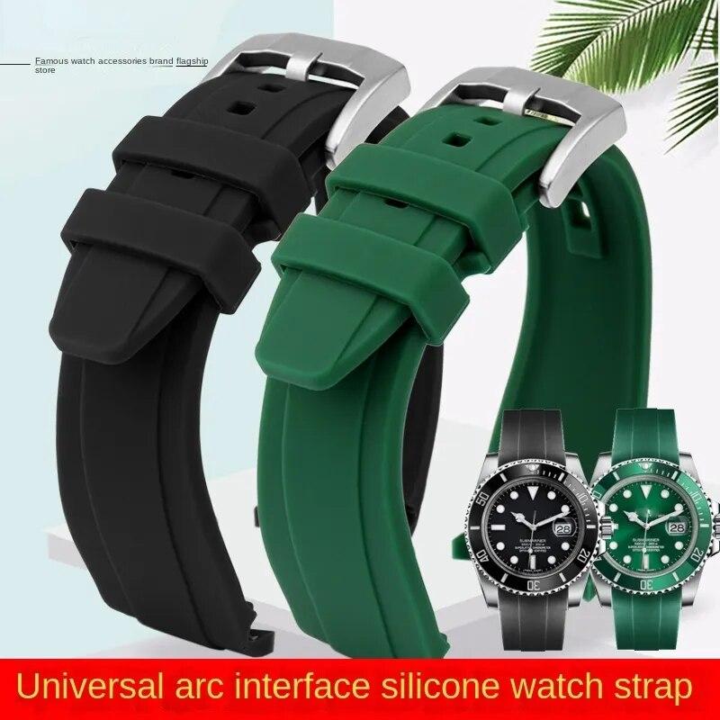 Мужской силиконовый резиновый ремешок для часов Rolex Water Ghost Seiko Citizen tissot 20 мм 22 мм, спортивный браслет, универсальный ремень с изогнутым концом
