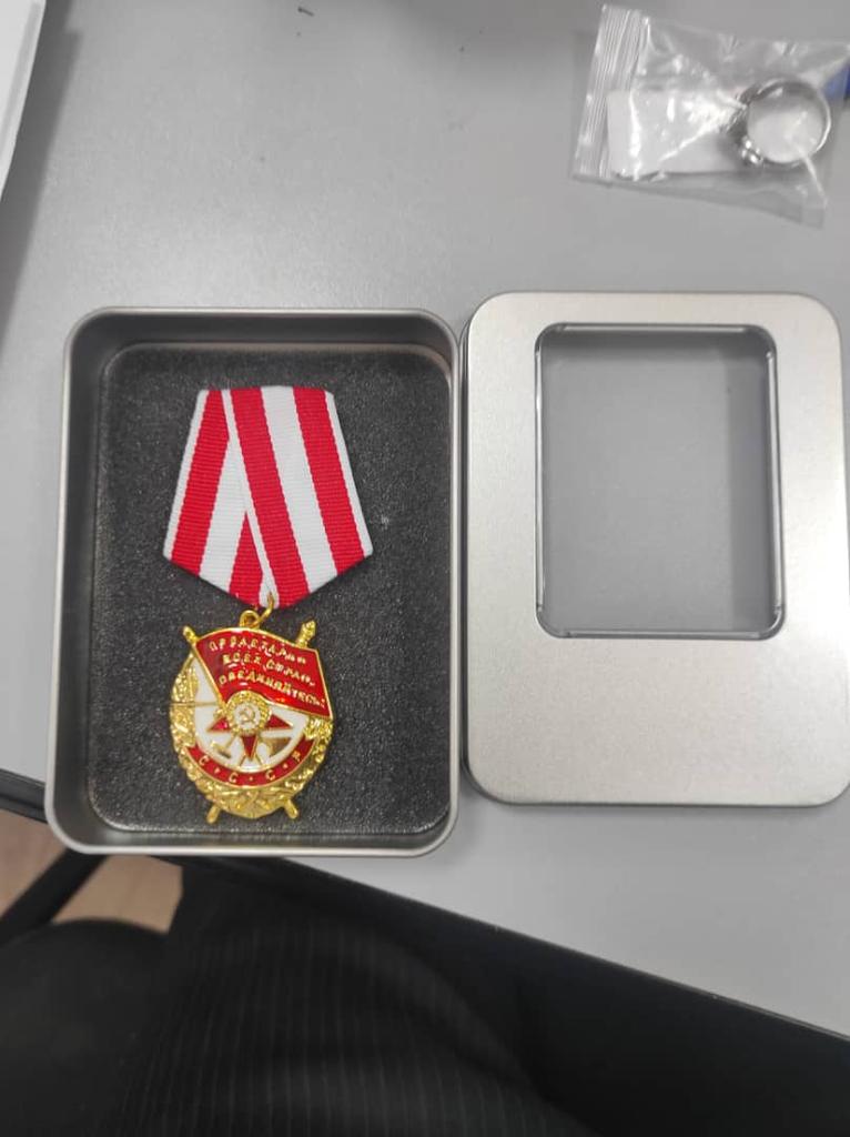 Быстрая доставка. Орден красивый, в коробочке металлической. Спасибо продавцу и Джуму.