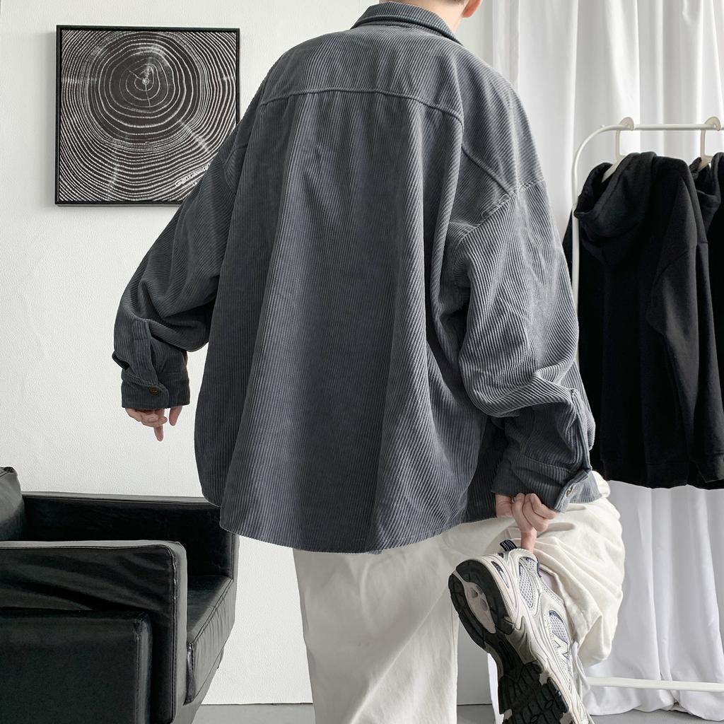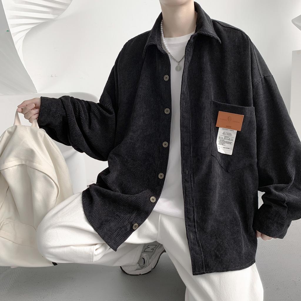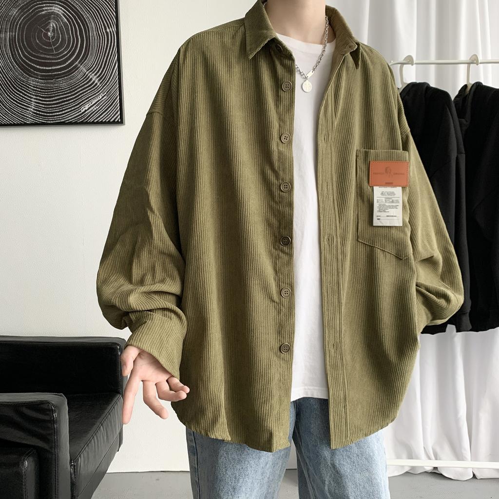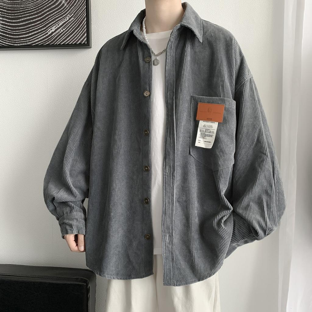 2022 весенне-осенняя вельветовая мужская рубашка с длинным рукавом, уличная однотонная повседневная мужская рубашка большого размера в стиле Харадзюку
