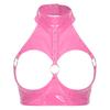 Женский бюстгальтер на косточках с открытой чашкой, укороченный топ, модный жилет с заклепками и уплотнительным кольцом, жилет с открытой спиной, топы из лакированной кожи с мокрым эффектом, клубная одежда