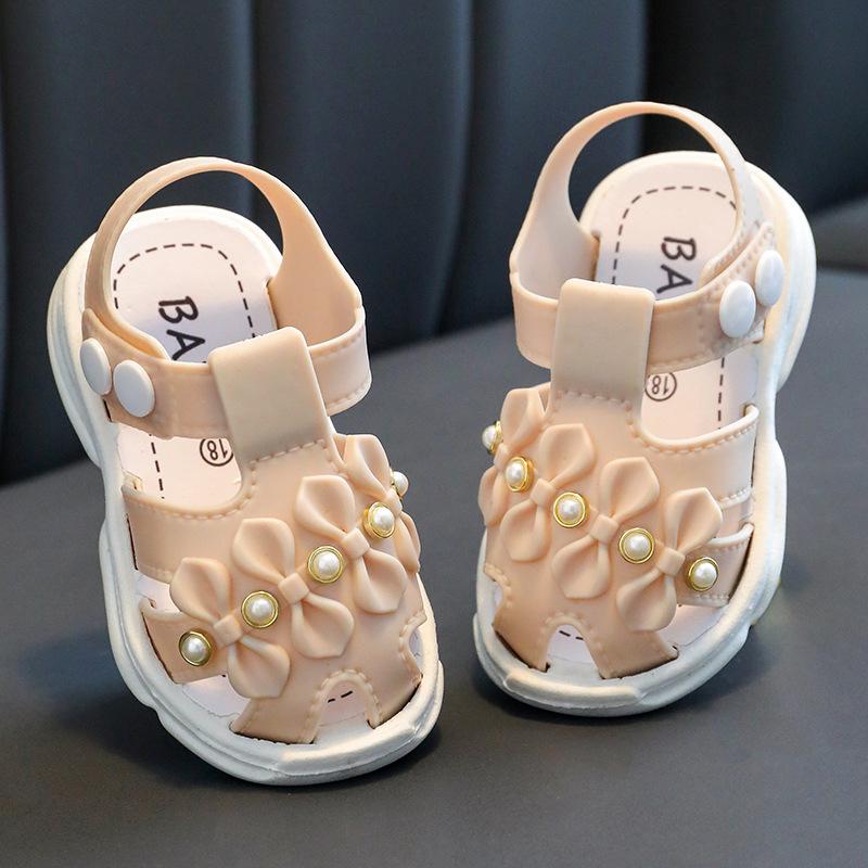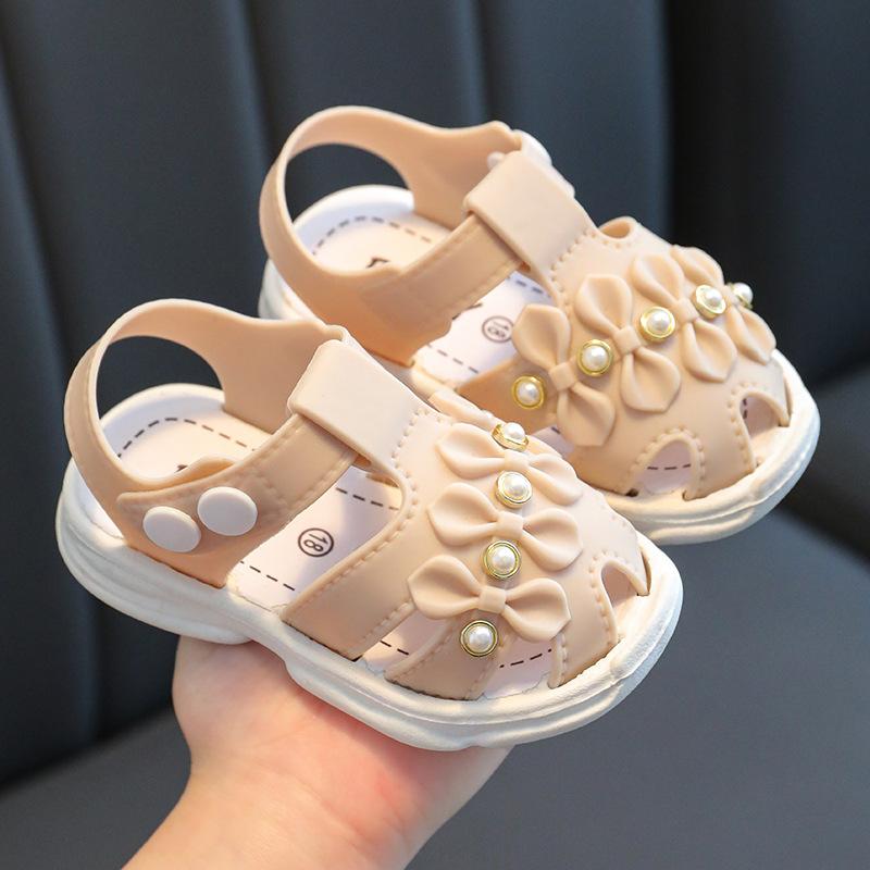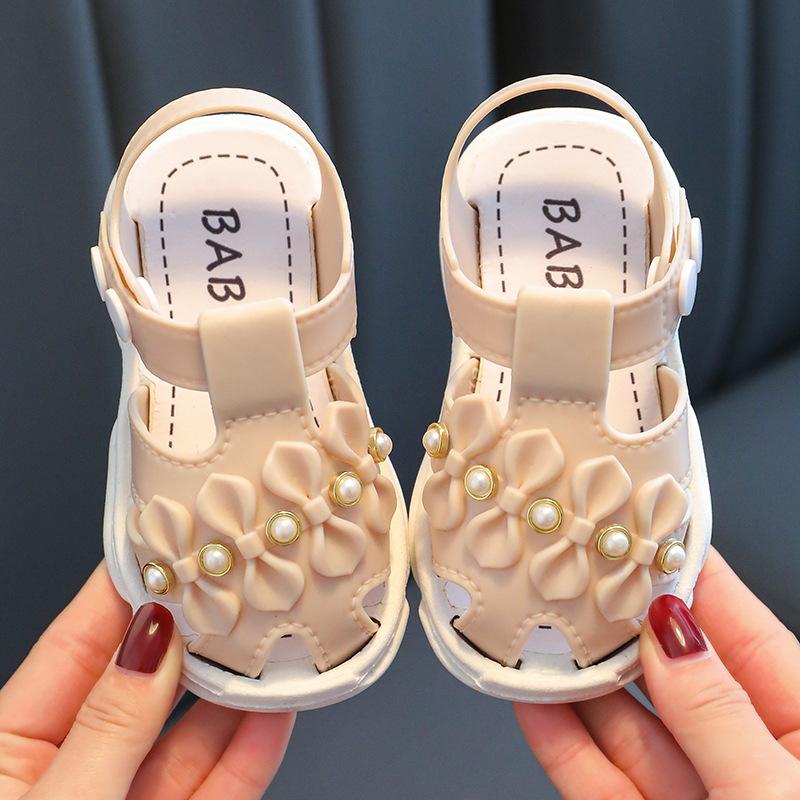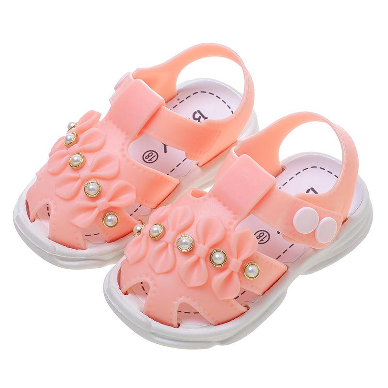 Обувь для младенцев. Сандалии для девочек. Детские летние сандалии с цветком. Нескользящая обувь для кроватки на мягкой резиновой подошве.