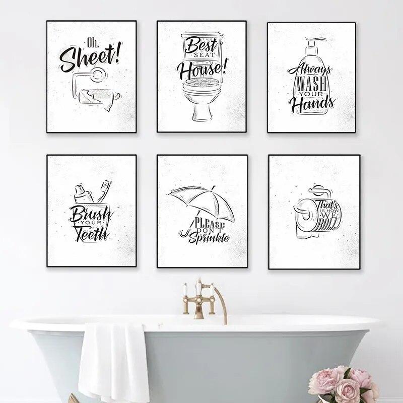 Туалет Цитата Картина Ванная Комната Стены Искусства Холст Картины Плакаты Печать Мода Черно-Белый Туалет Настенный Декор Кисть Декор Картина
