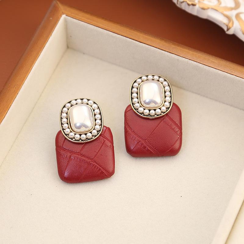 Новые винно-красные кожаные серьги с жемчугом, серьги в литературном ретро-этническом стиле, индивидуальные антикварные серебряные серьги-иглы
