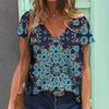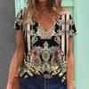Женская футболка с v-образным вырезом, летняя модная женская одежда, топы с 3d винтажным принтом, повседневная одежда для девочек, женский пуловер большого размера
