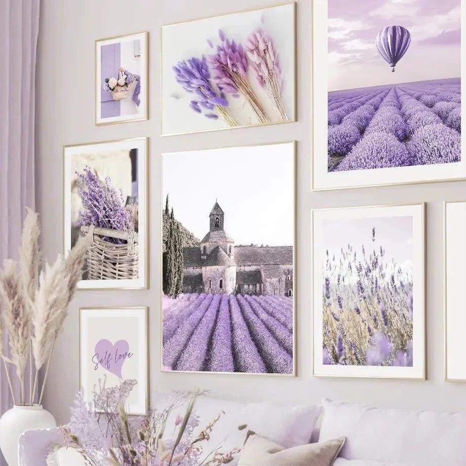 Фиолетовый цветок лаванды, трава, пейзаж, картина, холст, картина, настенное искусство, современный свежий постер и принт для домашнего декора в гостиную