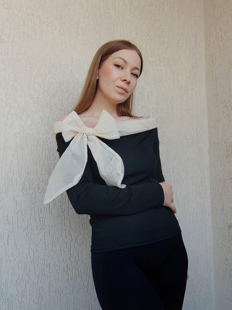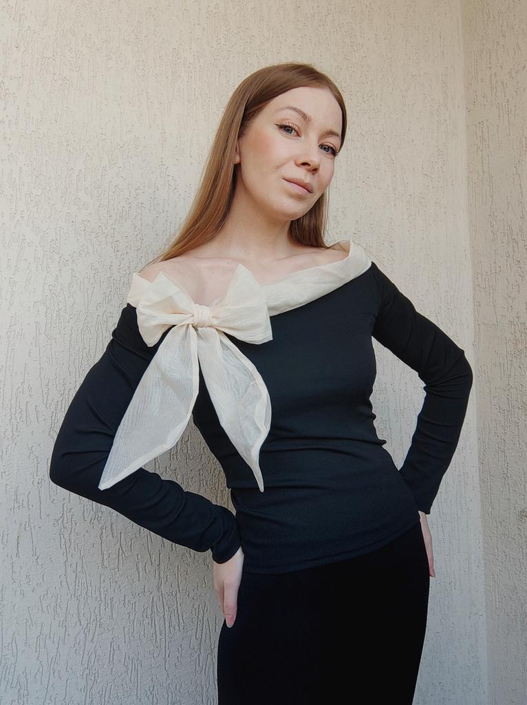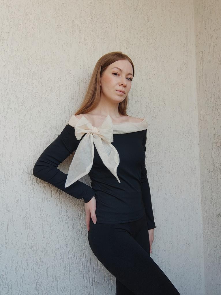Чудесный топ с очаровательным бантом. Тренд на открытые плечи плавно перетекает из весны в лето) и я как раз в теме 🙂 🔸Покупала самый маленький размер S - это на российский 40-й или XS. Цвет, насыщенный, черный, бант из очень нежной ткани, легко отпаривается, а вот само изделие - глажки не требует. На мне сидит отлично, очень комфортно. Ткань приятная, не колется, похожа на стрейч. Хорошо тянется, но не в плечах, так как там бант и не растягивается, а легко принимает исходную форму. Мои параметры: Рост: 159 см Вес: 44-45 кг Ширина от плеча до плеча по спинке: 35-36 см (ручное измерение) Параметры изделия: Длина рукава: 54 см Длина самого изделия: 45,5 см Ширина по талии: 31 см (тянется) Ширина плеч по спинке: 36 см Рекомендую всем дюймовочкам, просто супер и я очень рада удачной покупке. Ткань очень нежная и мягкая. Посылка пришла за три недели до Екатеринбурга 🛬 в фирменном пакете, без брака и запаха. Это фабричный пошив Удачных покупок 🛍️ #вашадаша