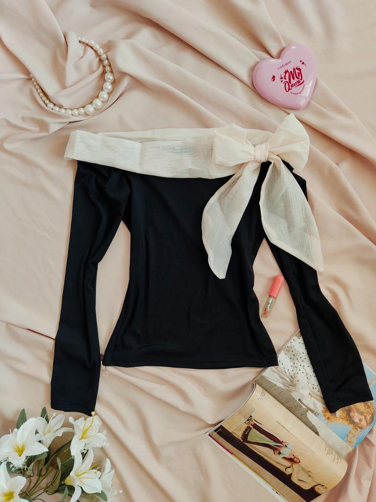 Кокетка с открытыми плечами, черные футболки, женские корейские стильные шикарные коричневые футболки с длинными рукавами с бантом, милые сексуальные лоскутные узкие топы — купить товар онлайн с бесплатной доставкой по всему миру!