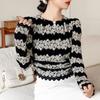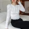 Модная вязаная крючком кружевная блузка для женщин, простые плиссированные топы с длинными рукавами, осень-зима, повседневная корейская полая рубашка 29562