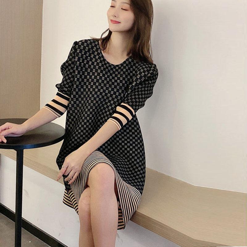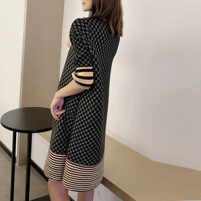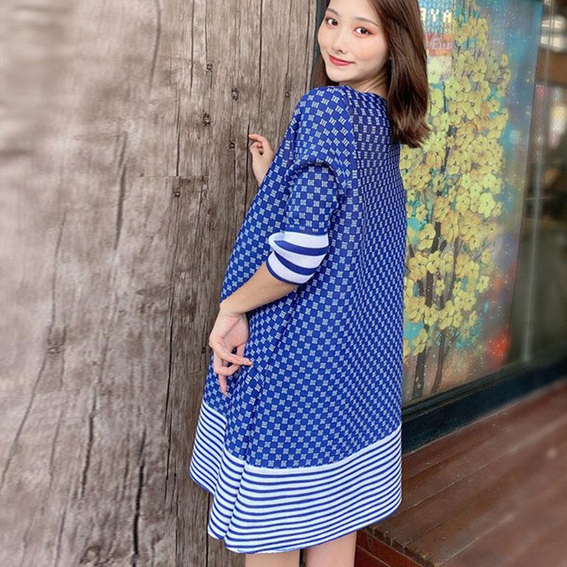 Плиссированное женское модное платье больших размеров, летнее свободное платье с v-образным вырезом для маленьких детей, повседневное платье с длинными рукавами и надписью