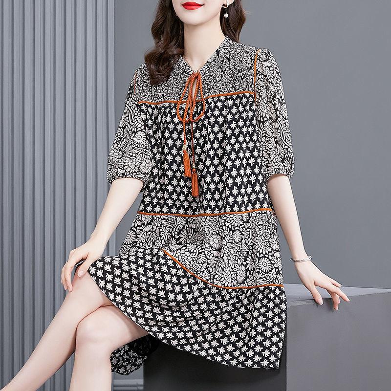 Платье с принтом, женское летнее платье, новое маленькое высококачественное свободное и тонкое платье с короткими рукавами и короткими рукавами, женское