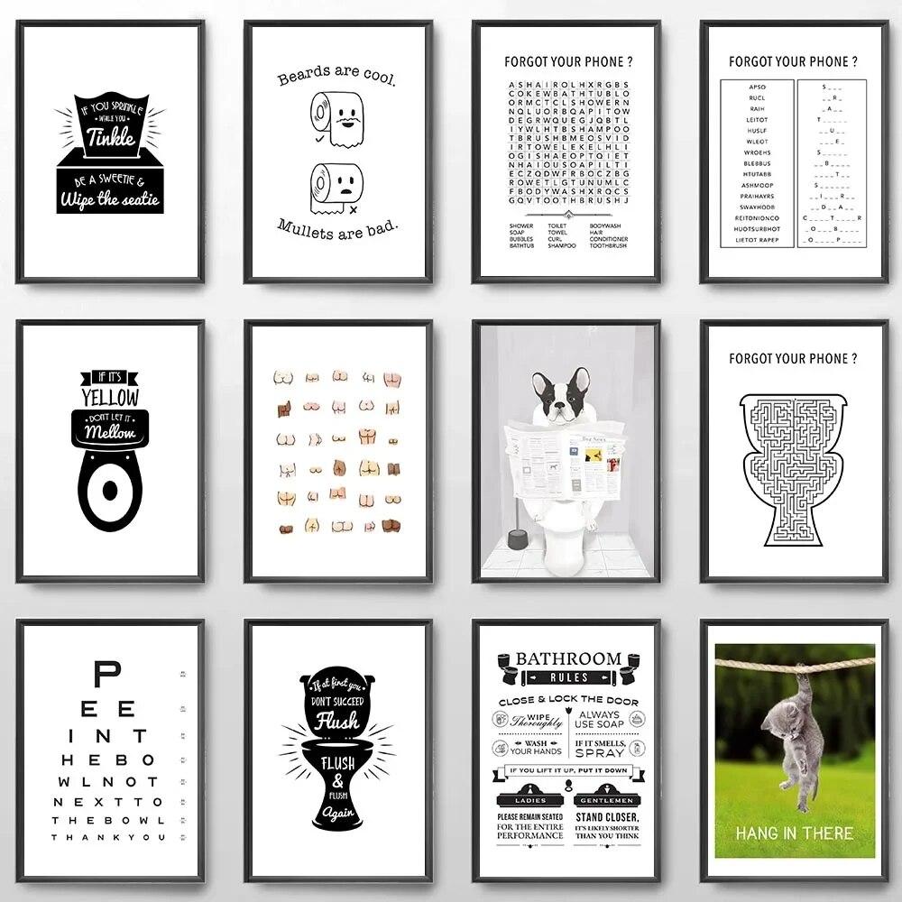 Французский бульдог в туалете, холст, картина, плакат, забавный знак правил ванной комнаты, скандинавская диаграмма, юмор, настенное искусство, домашний декор