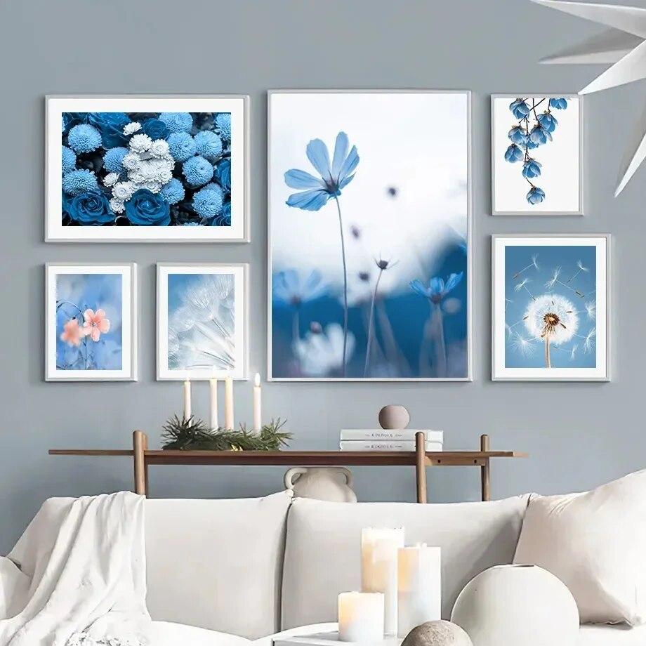 Синий, белый цветок, картина на холсте, настенная живопись, одуванчик, пион, орхидея, постер и принт для современного дома, Декор в гостиную