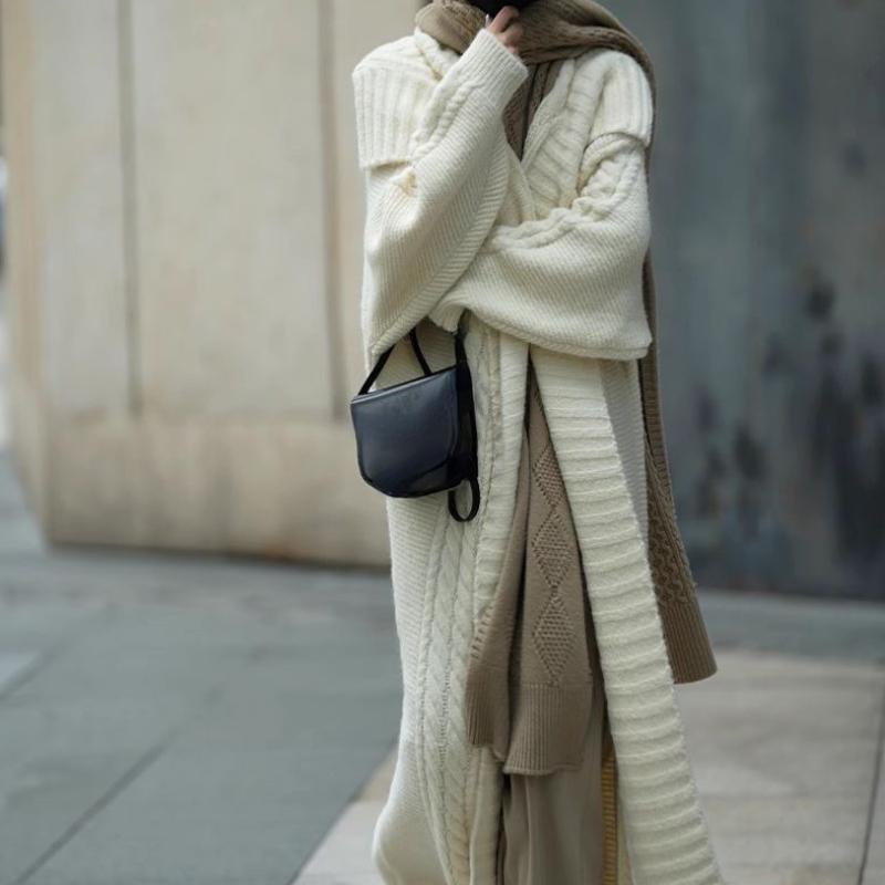Длинный вязаный кардиган, женский элегантный свободный женский свитер с лацканами и длинными рукавами, пальто 2024, весенняя уличная женская верхняя одежда — купить товар онлайн с бесплатной доставкой по всему миру!