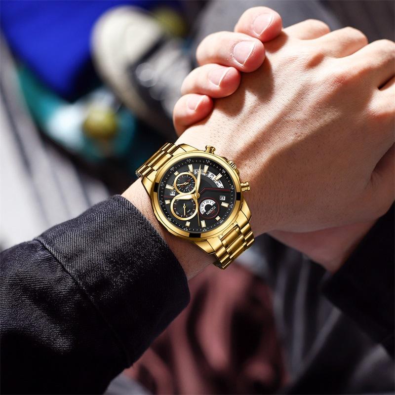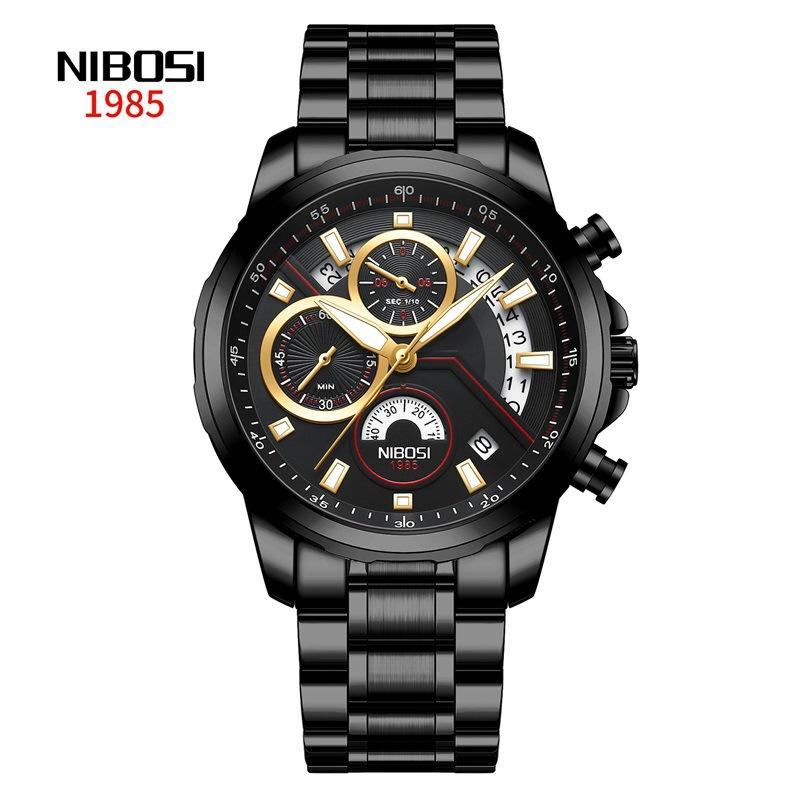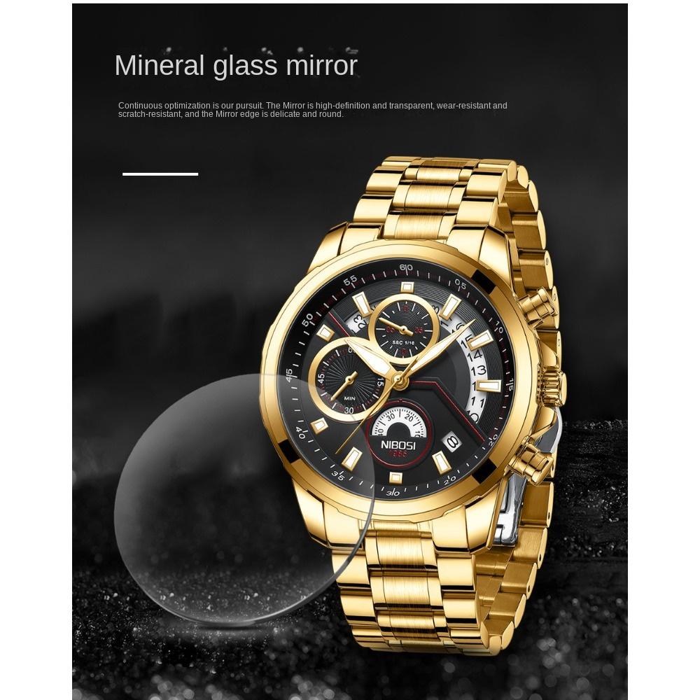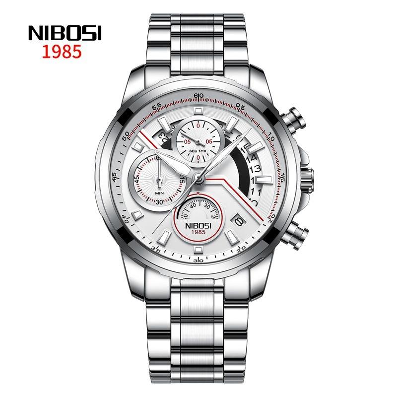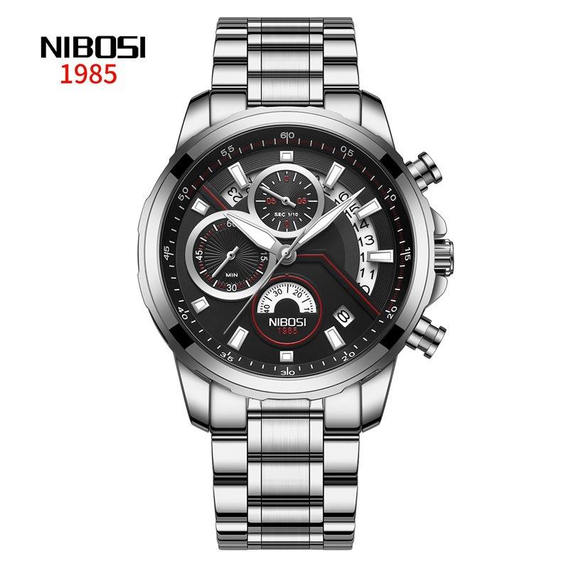 NIBOSI Мужские часы из твердой стали с левыми 3 глазами, 6 иглами, многофункциональные кварцевые часы, светящиеся, водонепроницаемые