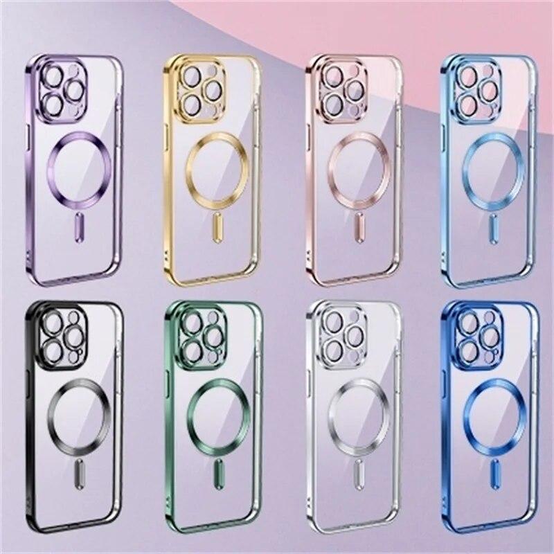 Чехол Magsafe для беспроводной зарядки для IPhone 15 14 13 12 11 Pro Max Plus, прозрачный защитный чехол из ТПУ с мягким покрытием для линз