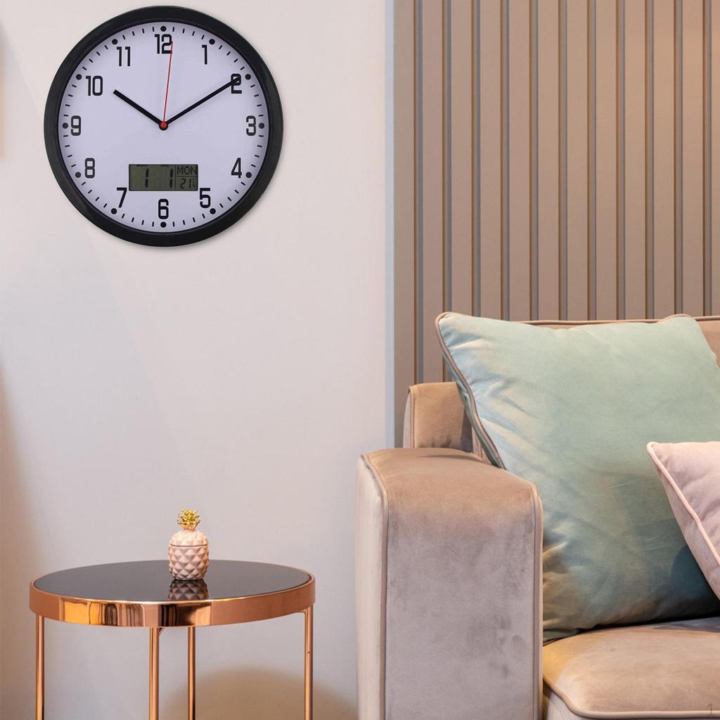 - ЧЕТКИЙ И ЛЕГКО ЧИТАЕМЫЙ: Круглые современные настенные часы диаметром 10 дюймов. Вы можете легко увидеть время, дату и температуру.. Этот настенный календарь может удовлетворить ваши ежедневные потребности.