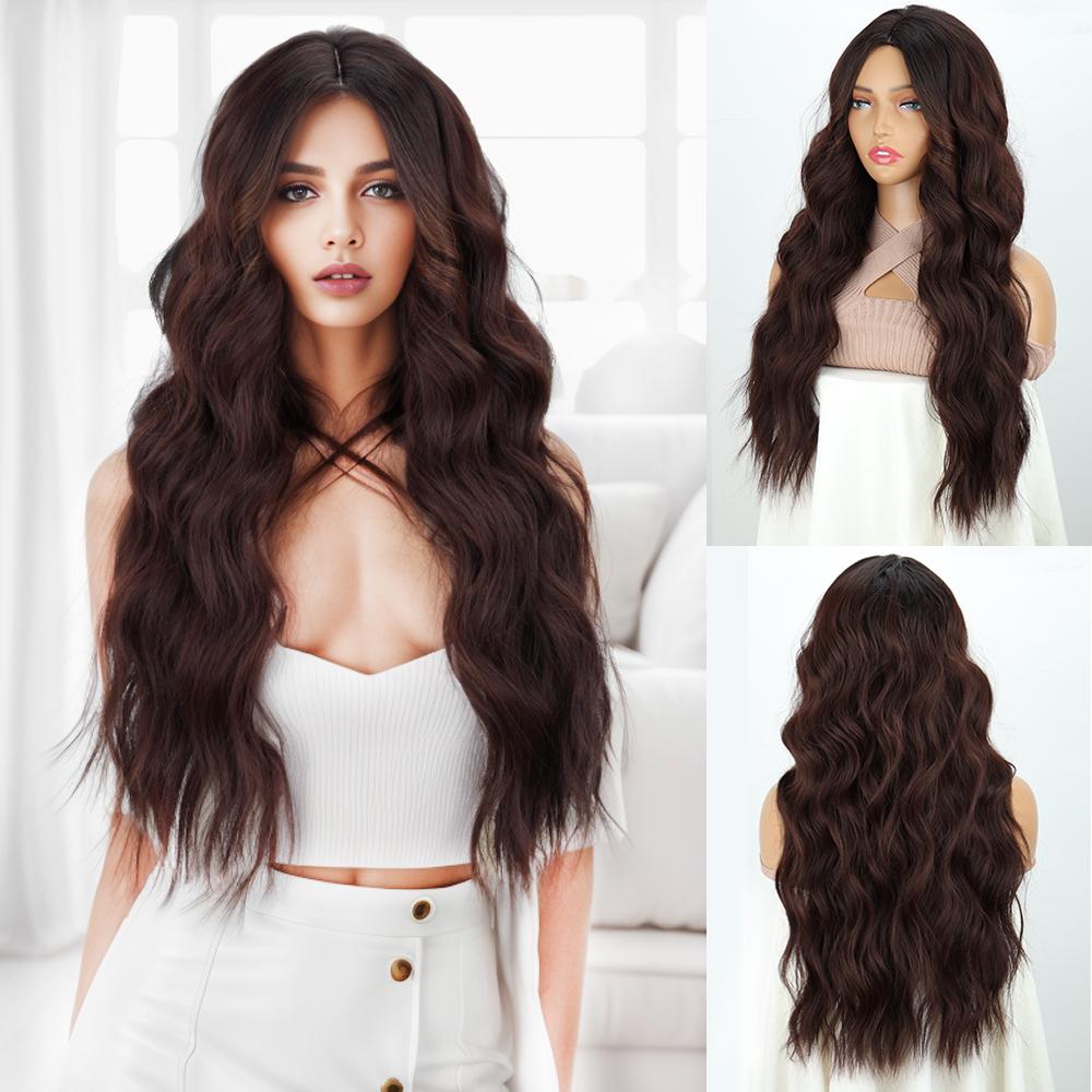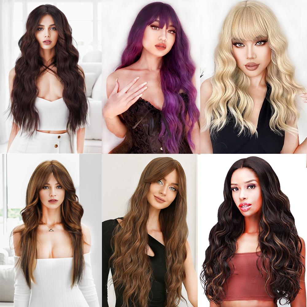 MISSQUEEN Парики с челкой Синтетический длинный натуральный волнистый темно-фиолетовый парик для женщин Повседневные парики для косплея