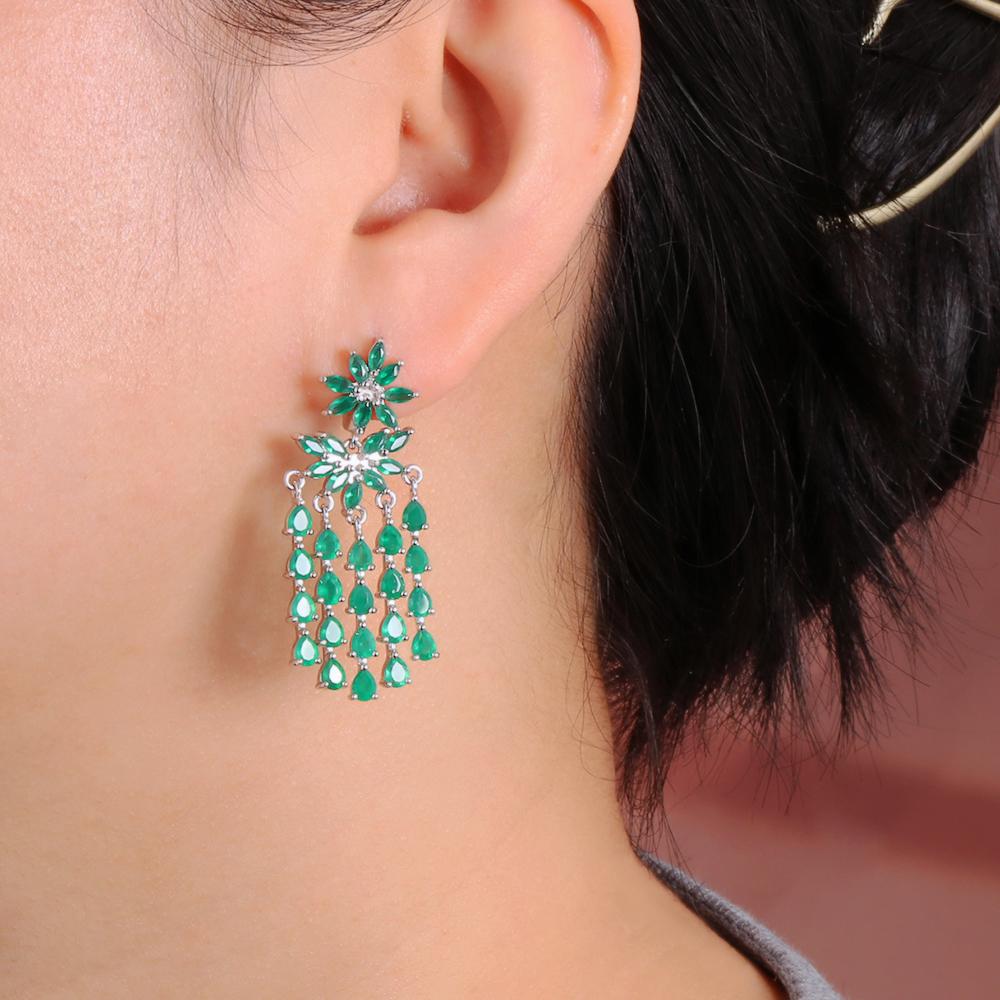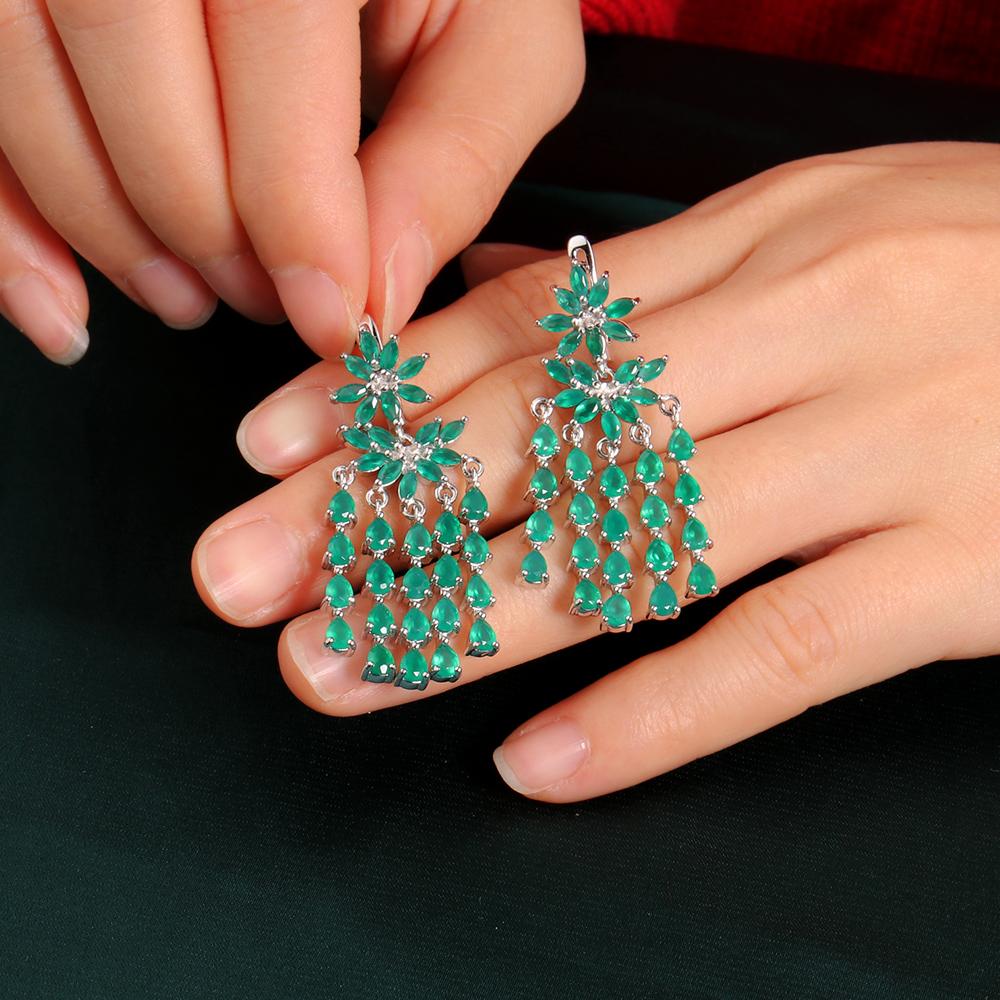2024 Роскошные висячие серьги с большой застежкой, натуральный зеленый агат, драгоценный камень, серебро 925 пробы, ювелирные изделия для женщин, подарок на день рождения, годовщину