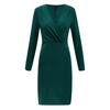 Вечернее женское сплошное платье с V-образным вырезом и длинным рукавом длиной до колена Bodycon Dress