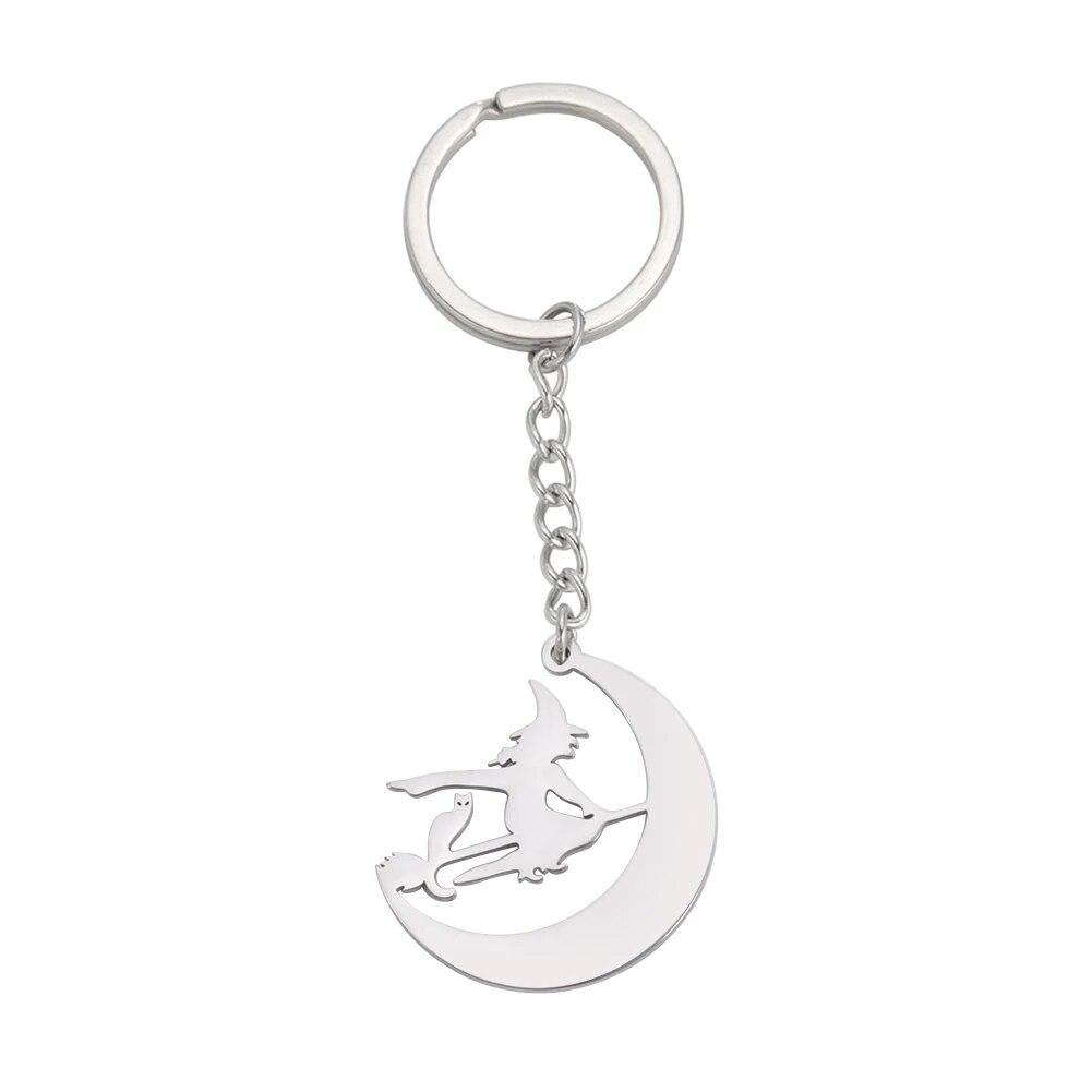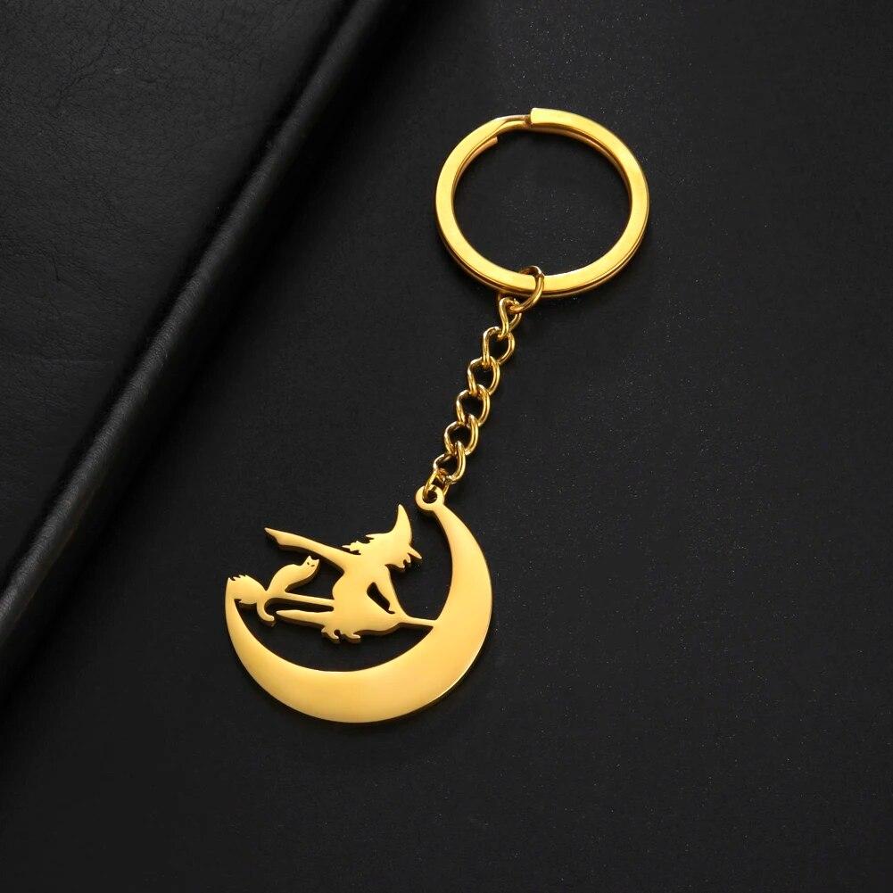 COOLTIME Хэллоуин мультфильм ведьма кошка луна брелок для женщин мужчин нержавеющая сталь золотого цвета брелок-держатель друзья подарок ювелирные изделия