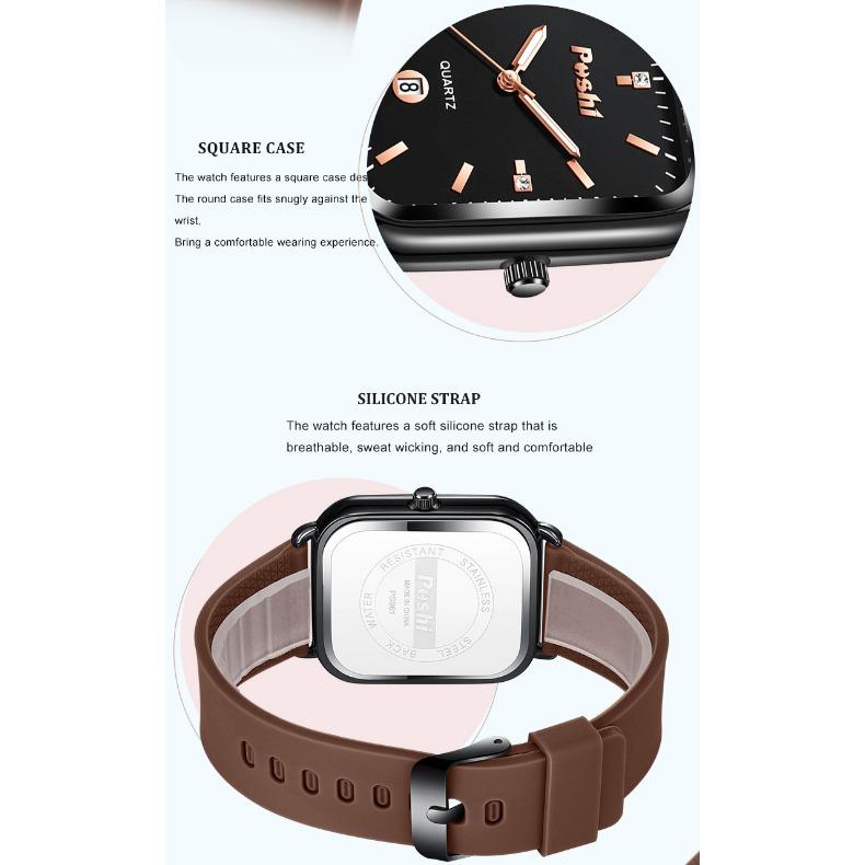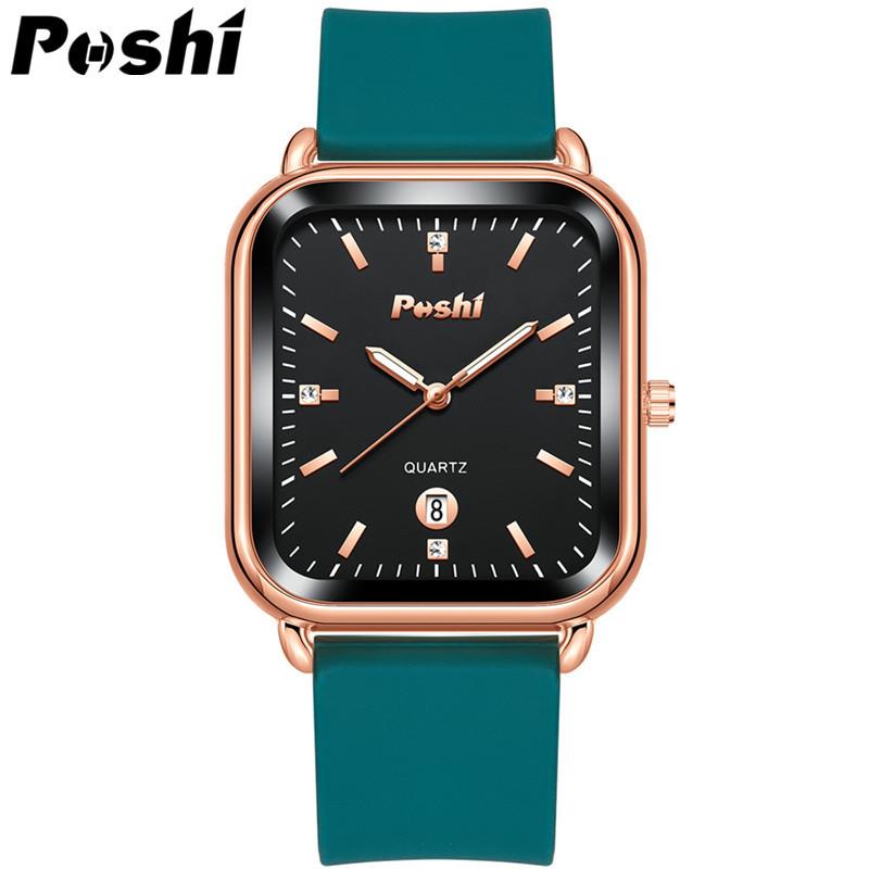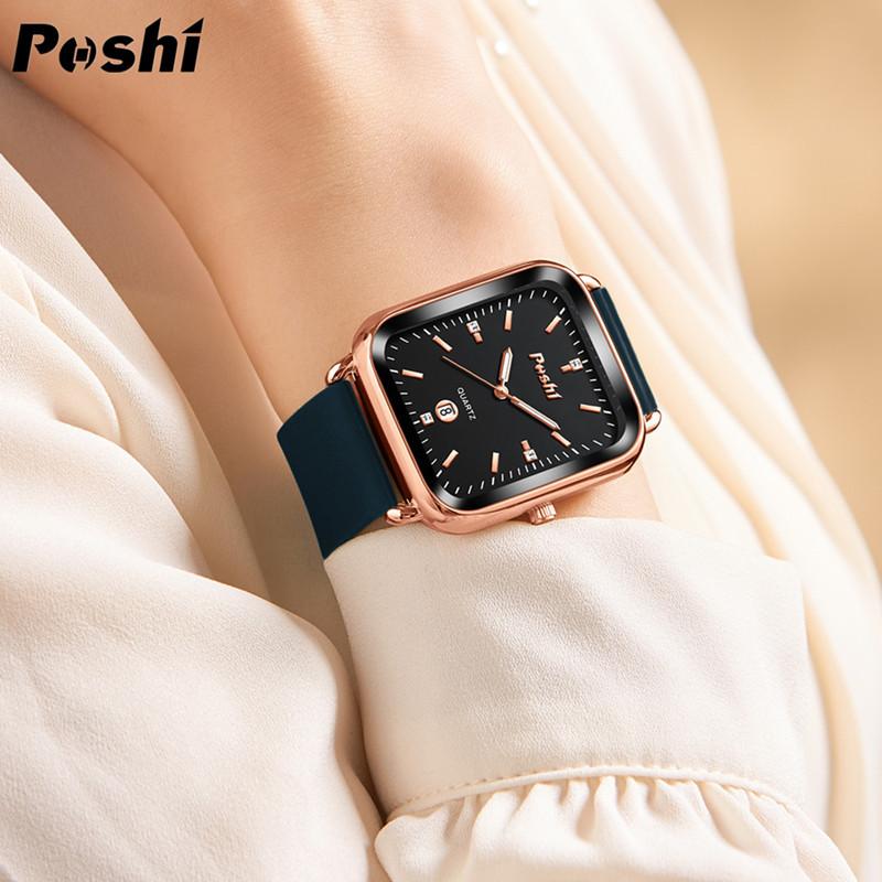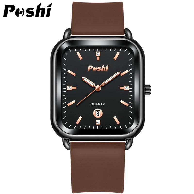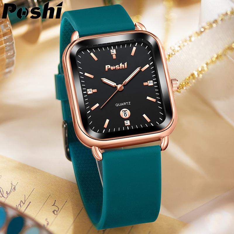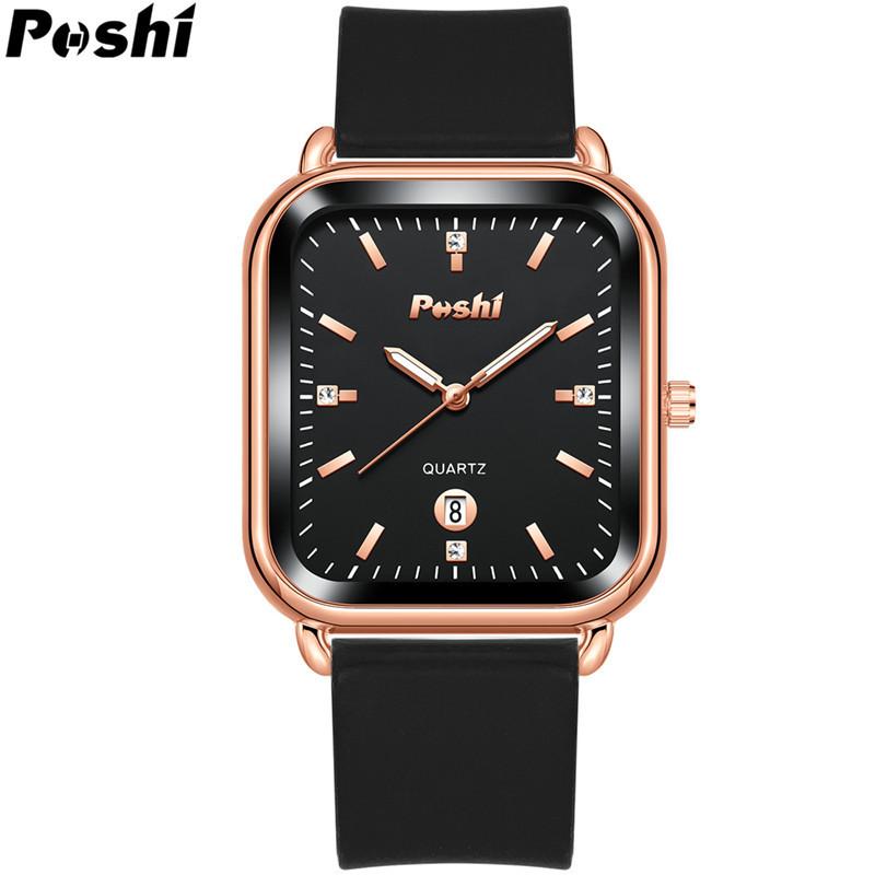 Часы POSHI, мужские и женские модные часы, водонепроницаемые женские кварцевые часы из сплава с силиконовым ремнем