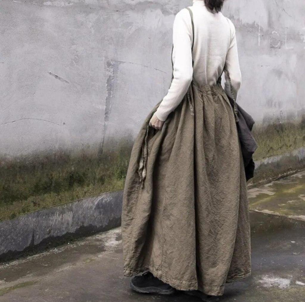 Johnature Женские винтажные хлопковые льняные юбки, толстые однотонные эластичные талии, высококачественные осенние юбки трапециевидной формы на бретелях — купить товар онлайн с бесплатной доставкой до всему миру!