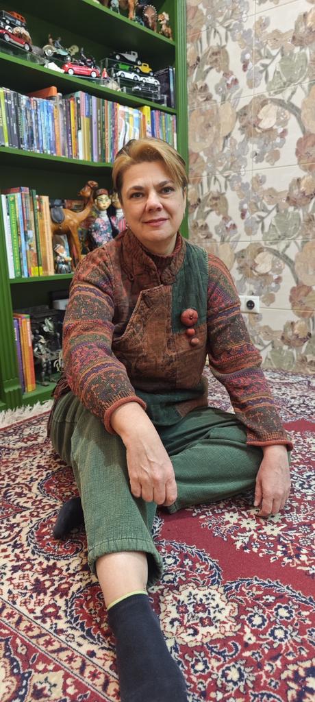 Классный жилет, для тех, кто любит стиль бохо. Ткань потертая, тёплый. Размер подходит моим параметрам ОГ98, ОТ 78, ОБ 100. Длина нормальная. Единственно, нет карманов. У меня жилет ассоциируется с наличием карманов. Но это, конечно, мелочь. А так все здорово!!!