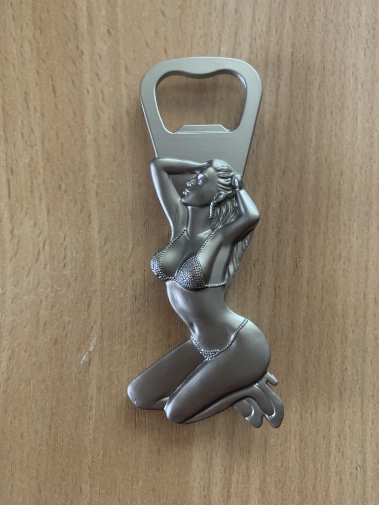Металлическая открывалка и изображением красавицы, ну тут больше на подарок. Не знаю как будет работать и удобно ли ею пользоваться. Но без внимания такая вещь не останется. Да она ещё и с магнитом, лично я повесила на холодильник, для красоты. Спасибо за такой большой выбор и возможность приобрести!